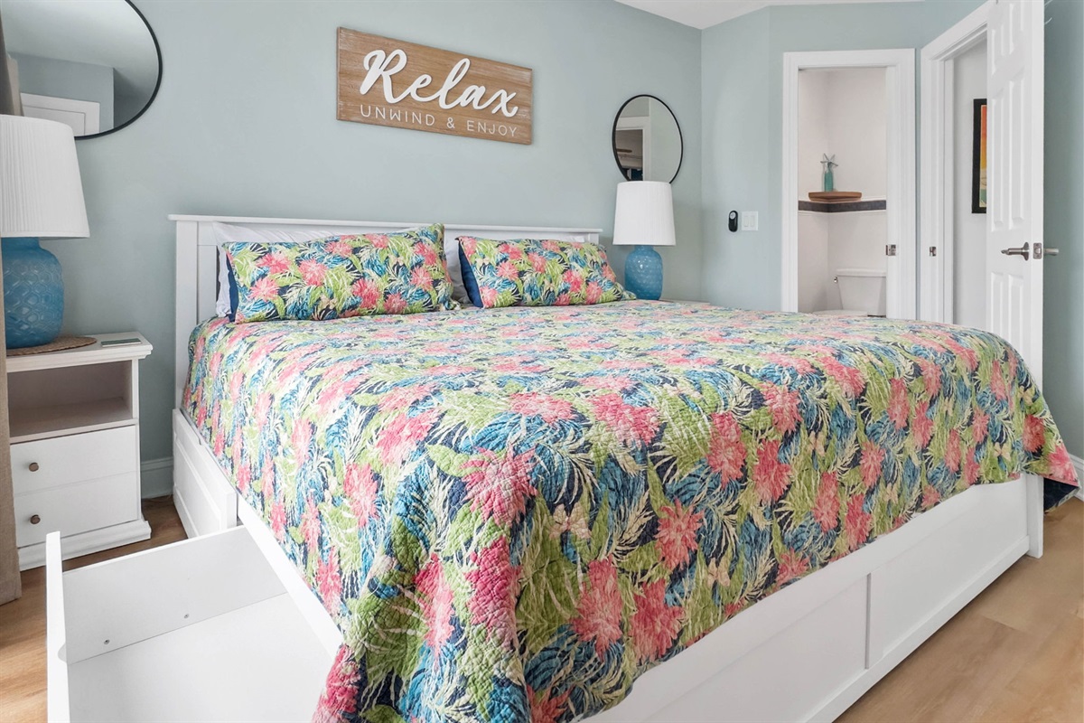 Only steps away from the beach and the pool, this condo has everything you need for a perfect beach escape. The primary bedroom has a king bed and a half bathroom. The hallway has a full bathroom as well as a built-in nook with a twin bed on the top and a full bed on the bottom. There is also a full sleeper sofa in the family room that can provide additional sleeping space for children. Comfortably sleeps six- 2 adults and up to 4 children.